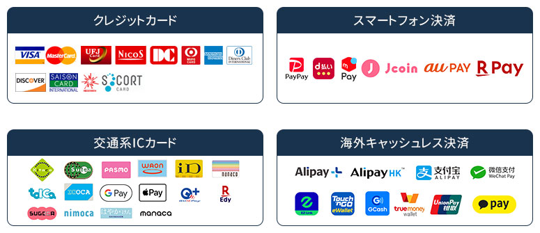 現金、クレジットカード、交通系ICカード、各種キャッシュレス決済がご利用いただけます。